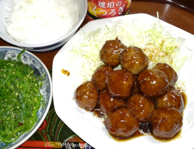 甘辛ソースの肉団子 まぃぅ━。゚。(( ´)艸(` ))。゚。━♪