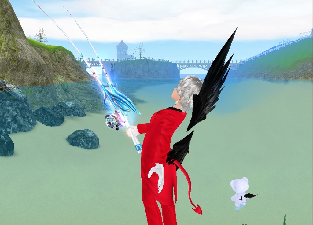二本竿で材料釣りしてます。材料が同時に二つ釣れるって聞いたけど俺は1つしか確認できてない模様。