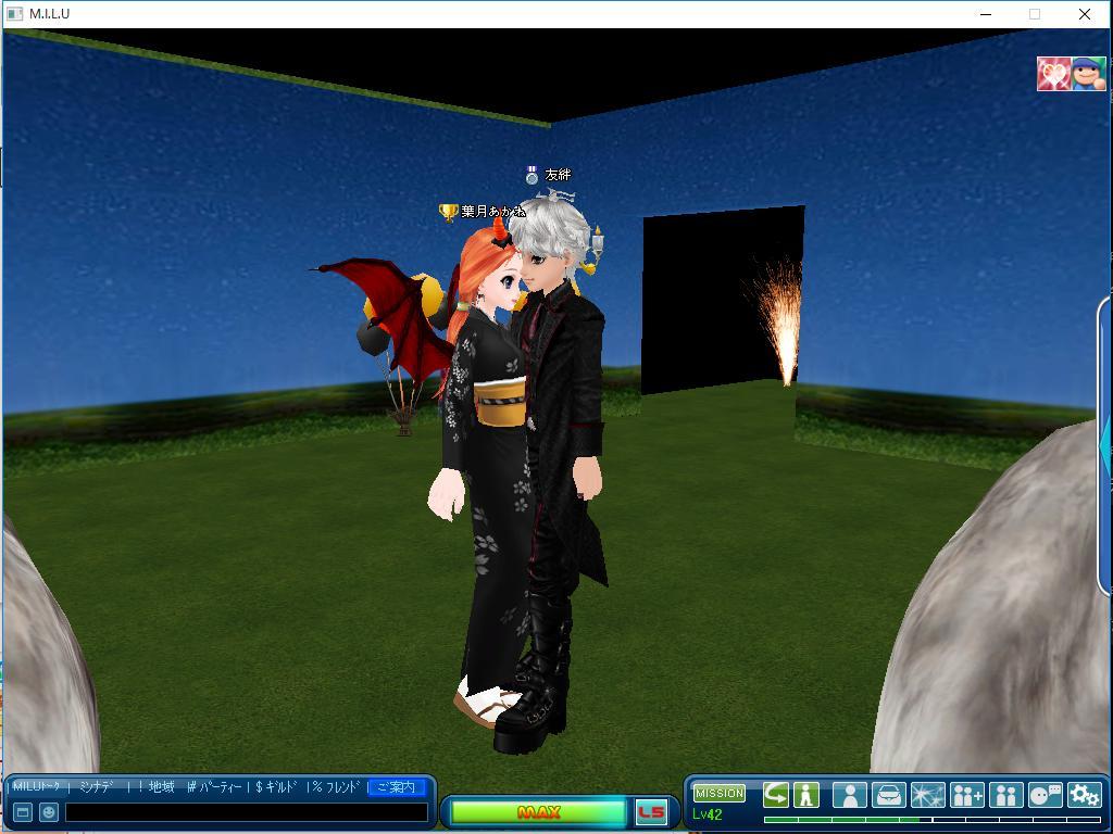後ろの方で花火がw
