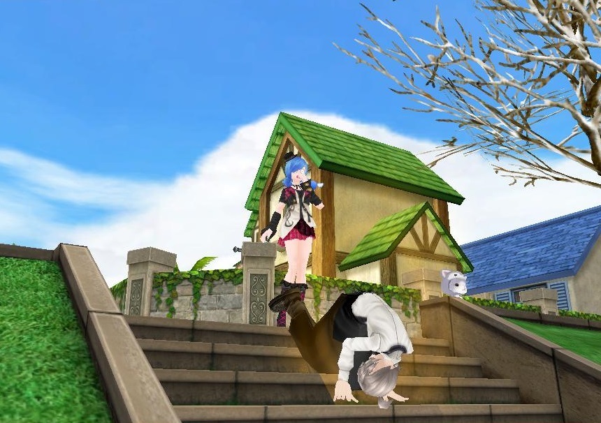 そのまま勢いあまって塀を乗り越え