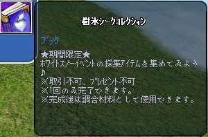 ホワイトスノーイベント~2週目~は クエストあり コレブ3冊で 採集ですね。 クエストは モンテスからで シーク カムで 樹氷シークも腕輪を購入 採集 30回 ロイで ポーラーベア(スター)ボックスを 20個使用するです。