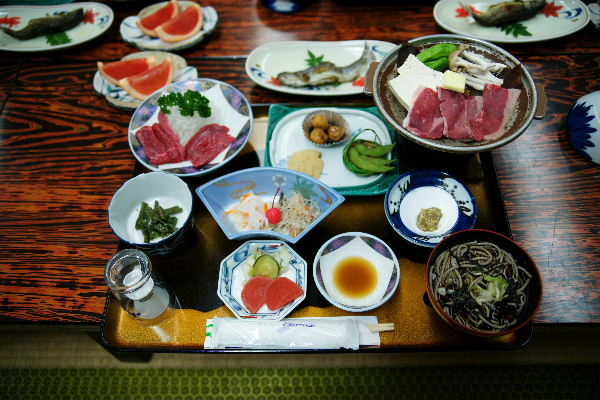 いい時間になったので旅館に移動し、先に風呂に入り夕食となりました