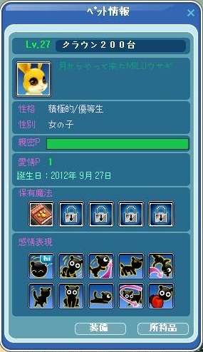 | ペット、LVUPおめでとーー^^v |