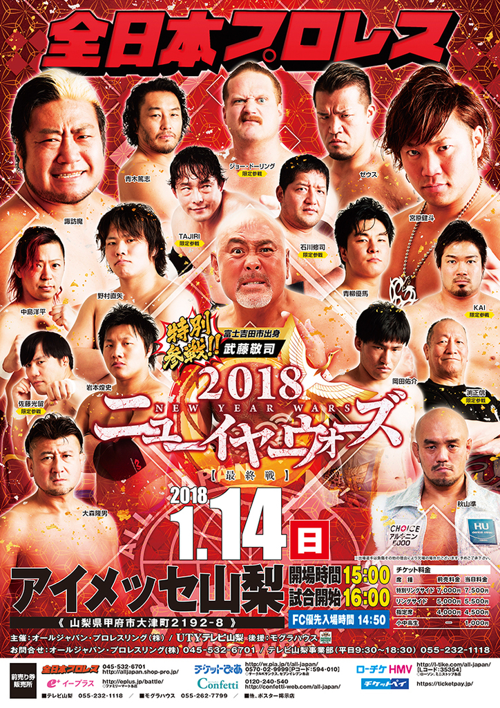 武藤敬司 2018年1月14日、全日本プロレス山梨アイメッセ大会に出場決定!!