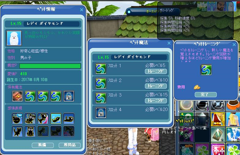 ペットLVが15になりました。