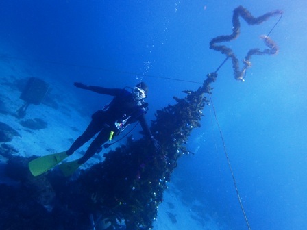 港の関係者や漁師さんが手作りのツリーが海中に出現