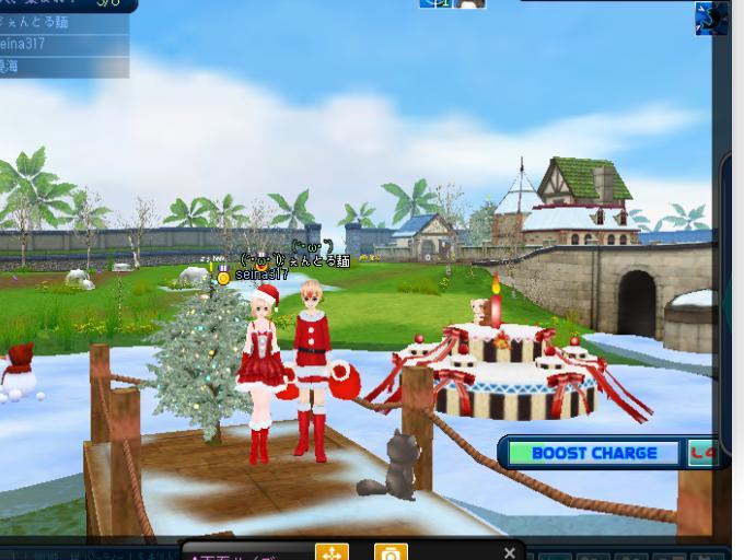 あと、ピシュルのクリスマスケーキ、ツリーの前で記念撮影です^^