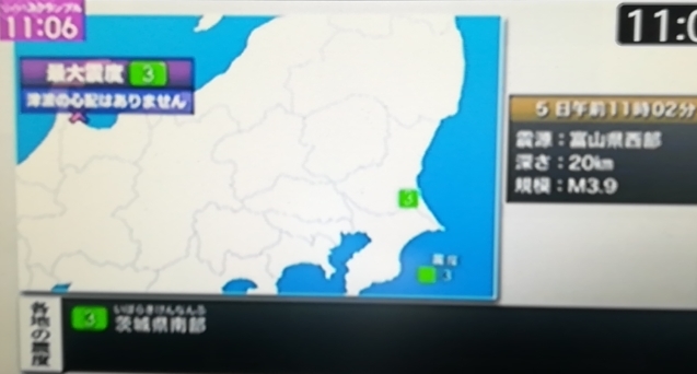 昼間の緊急地震速報…茨城で震度3なのに