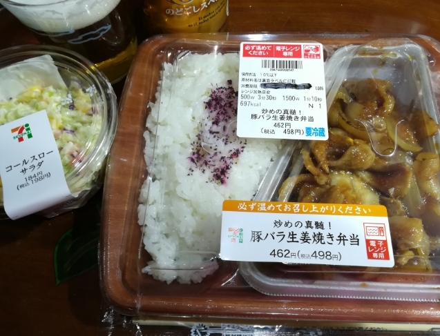 ① 痛めの真髄!豚バラ生姜焼き弁当 ② コールスローサラダ