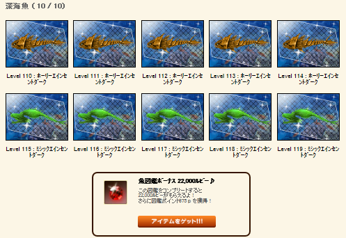 魚図鑑が完成するとルビーGETボタンをポチっとしたくなるんですが、ルビーは半年経つと消滅するというふざけた仕様なので、必要になる時まで放置するようにしています。