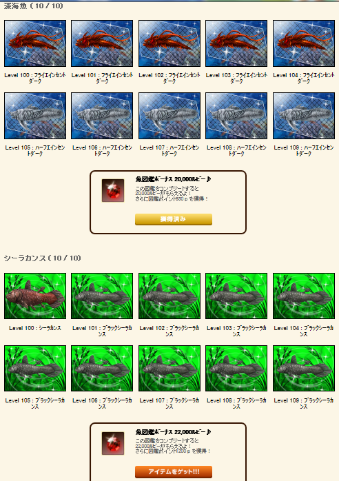 高LVになってくると釣れる魚を精密にかけた時のクオリティーも高くなってきていて、一定LV以上の深海魚とシーラカンスは色違いの物が釣れるようになります。