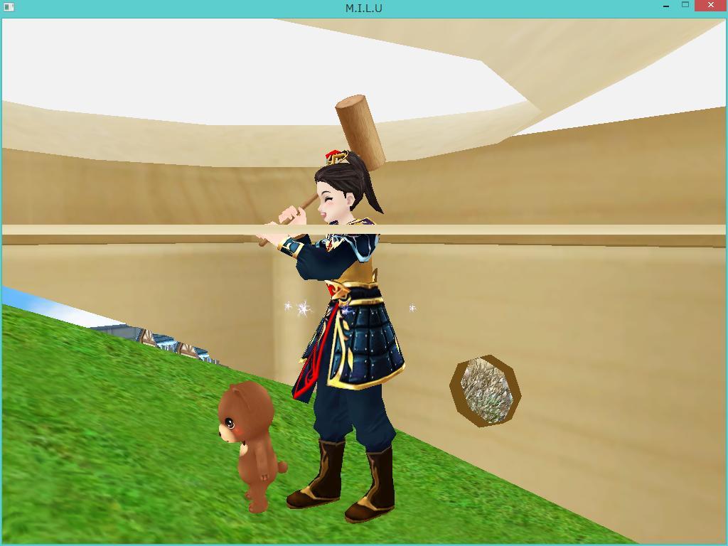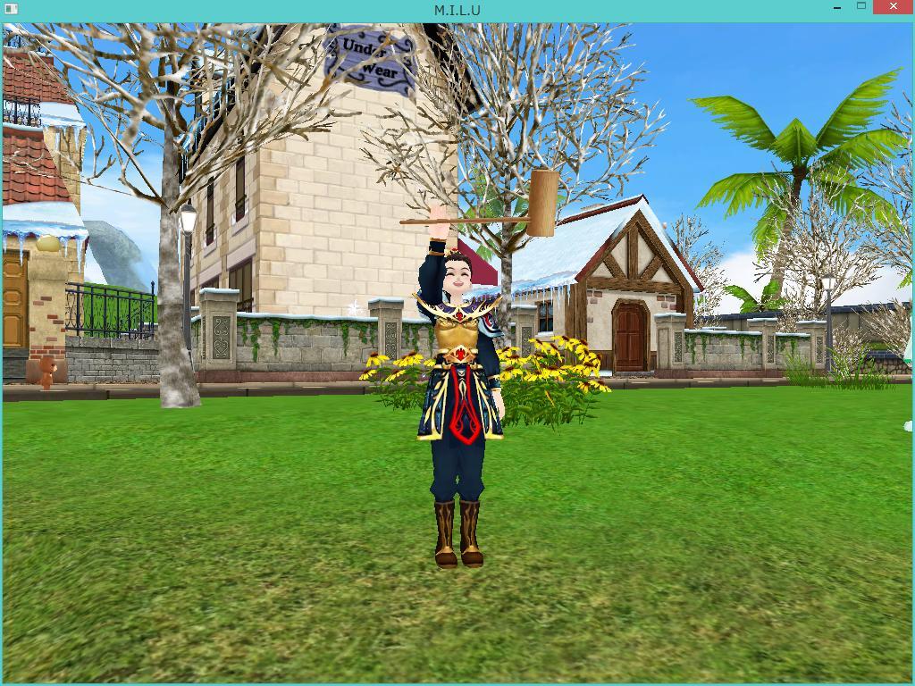 鏡餅(オブジェ)の下にもぐって杵つきw(*´▽`*)