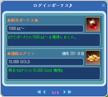 連続ログインはあいも変わらず1万G。もうちょい増えないかな~