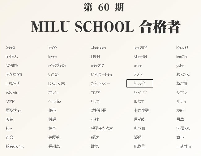 第60期MILUSCHOOLに合格してました^^