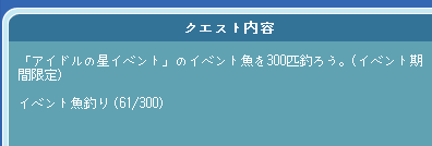 サボり気味なんですが、あと5日あってイベ釣り30回のミッションをこなしたとして、5日×30=150で300回まで90程足りないなぁ。