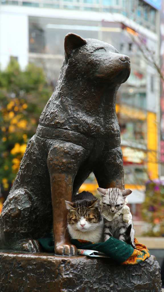 ハチ公が風雨から猫ちゃん守ってるみたいで凛々しい~(〃▽〃)ポッ