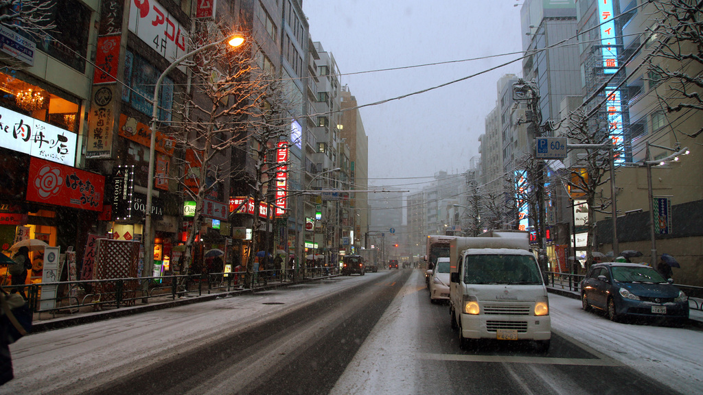 | 雪のある 道路を走る車の音って、寒さを教えるよね |