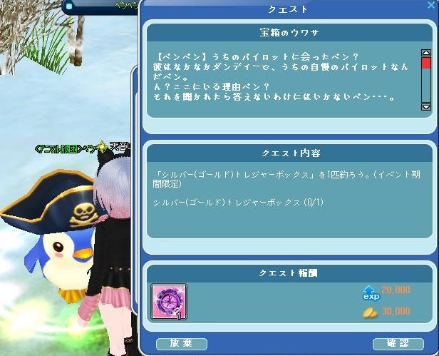 でも、案内板のクエストも100匹釣れがあるので、気長に待ってみるか^ ^ ;