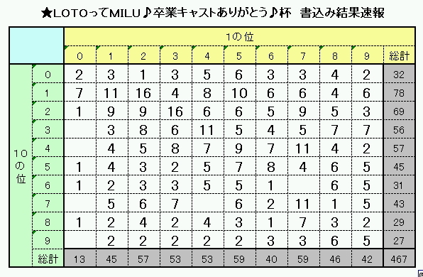 ★LOTOってMILU♪無事、書込み〆切して、集計チェック作業をいたしました。