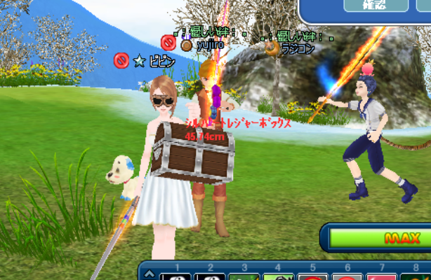宝箱釣り上げれるなんてなんか気分いいですね(∀`*ゞ)後ろで走り回ってるラジコンさん面白かったです(・m・ )クスッ