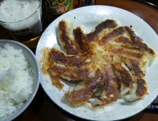 ① 羽根付き焼きギョウザ ② ライス