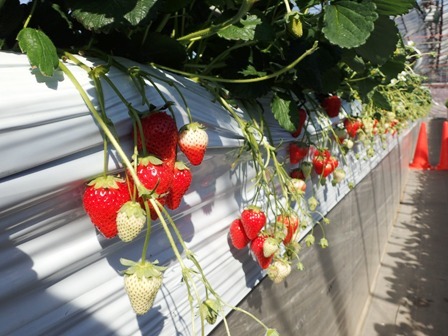 水耕栽培で高い位置にいちごがなるので取りやすいです