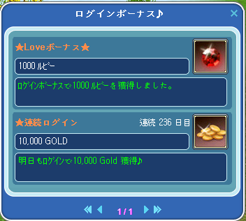 無事1,000ルビーGET!