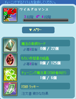 チューニング4段階以上はチューニング草が使える。