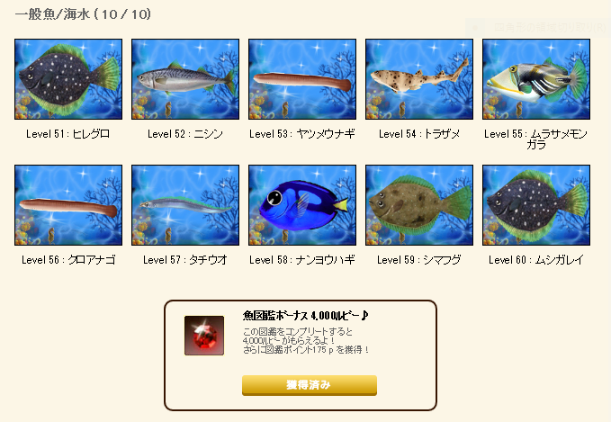| 魚図鑑完成おめでとうございます\(^o^)/ |