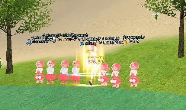 飛んだ瞬間、みなさん今回のイベの桃服に身を包まれているのを発見!