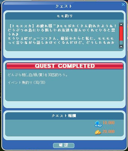 クエストをクリアです(=゚ω゚)ノピチ