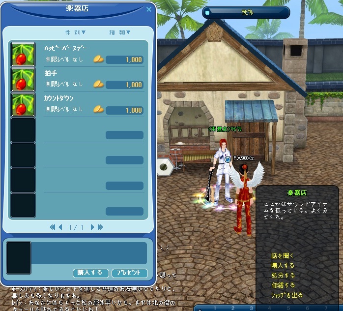 もう先週の事だったかな?まだ実装されてなかった楽器店がついにオープンしました。