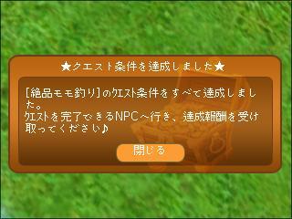 モンテスに報告後、協力釣り1匹の次ゎ10匹とかかなぁ?って思ってMAP開いても!のアイコンが見えなかったのでコレで終わりみたいだけど、今までがきつかった分何だか拍子抜けでしたw