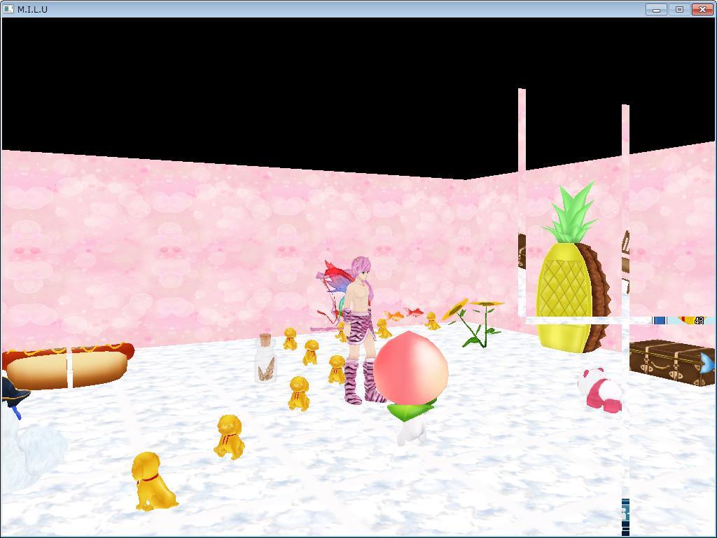 地上に降りると 紫姉から昨日貰ったワンコの置物とドロップした桃人形をハウスに置いた。