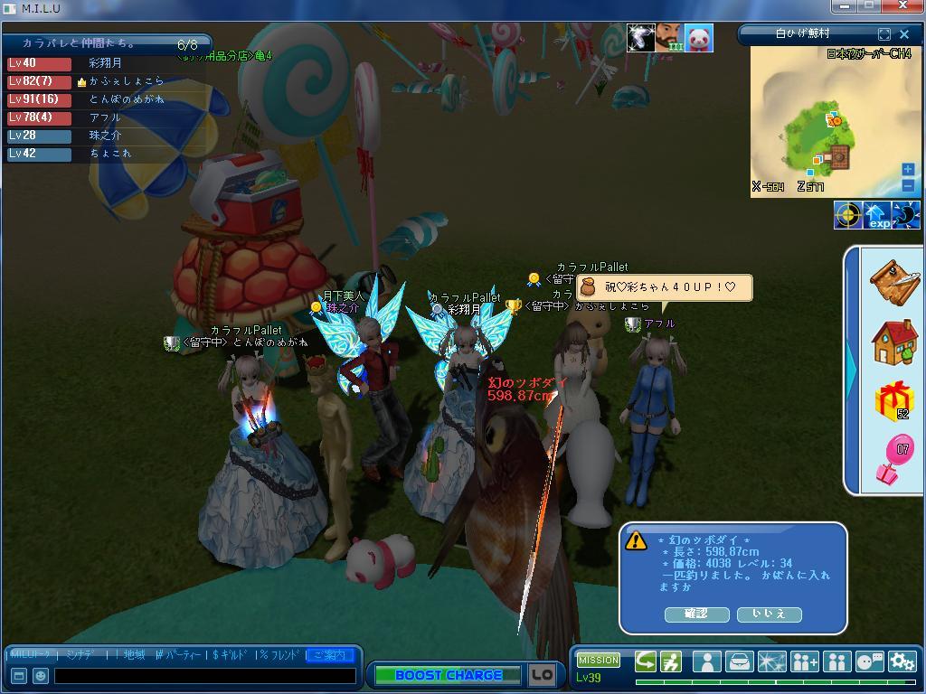 39UP!珠ちゃんと、羽がお揃いだったと判明っ!この後に、初ゴールデンフィッシュ君がハロォ~♪(。・ω・。)ノ