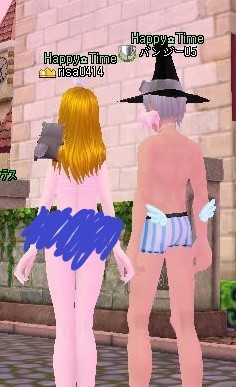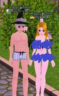 女性の方は、かなりきわどく、半尻状態ですね♡