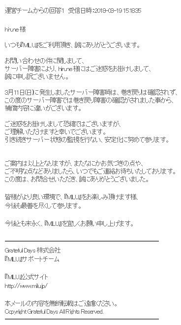 次に起こった…1鯖ダウンの不具合の補償の違いについての…運営の回答である