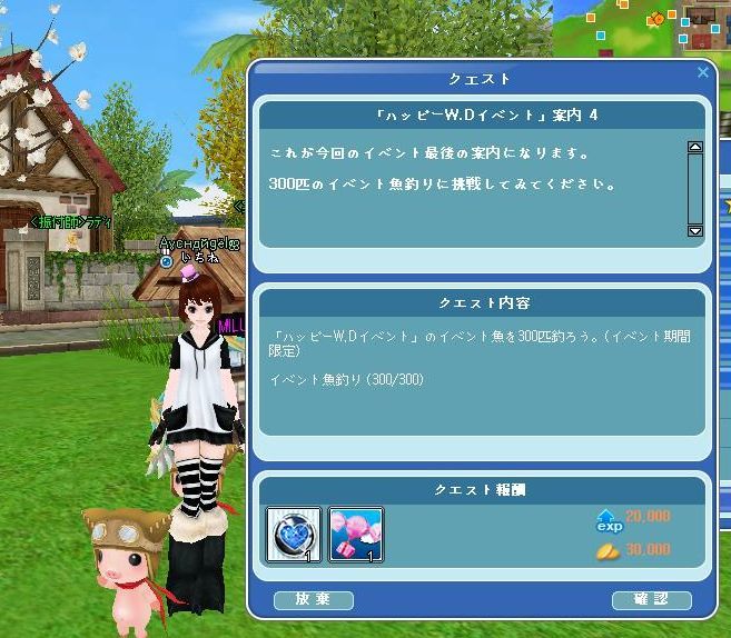 案内板のイベントクエスト300釣り、無事達成しました(๑・㉨・๑)