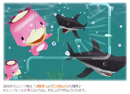 そして、ユニークレベルが6になると新しいユニーク魚 ピンクカッパとメガロドンが釣れるみたいです^^