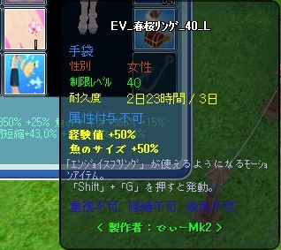 とりあえず、調合で3日耐久の50%属性に。。