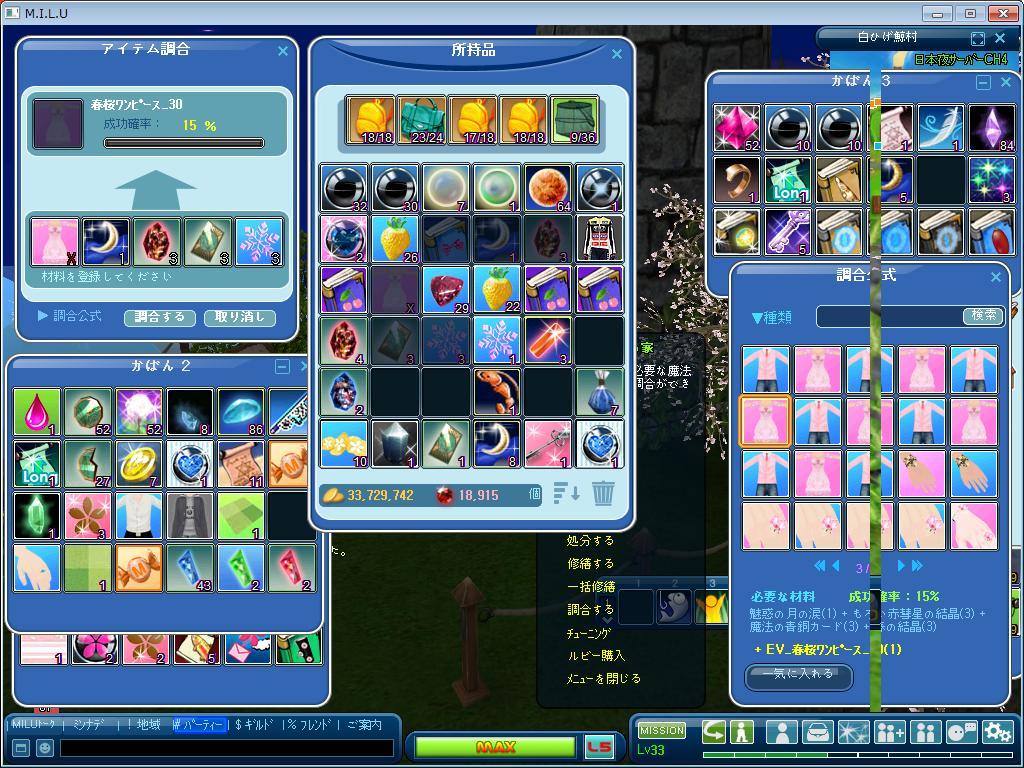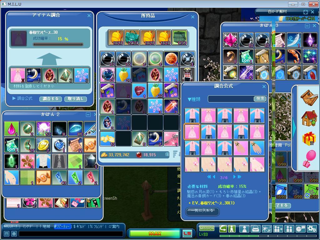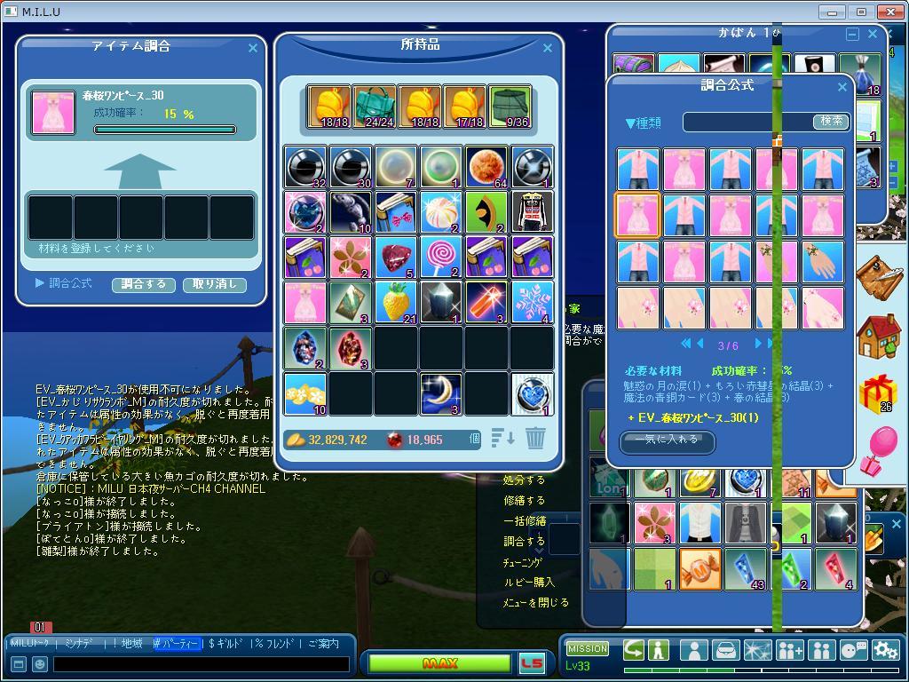 初めて 自分の名前が入った服を 調合する事になって がんばったよー 何度も 何度も失敗して 材料底突いて