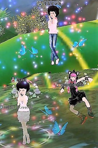 キノコの森で アフロなお二人 めーーーっけ☆ 何してあそぼーって考えながら まずは イベ釣からSTARTなのです(*‘∀‘) うんてぃむさんの 謎のカメラ目線ww