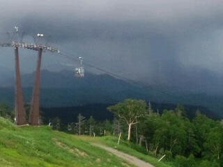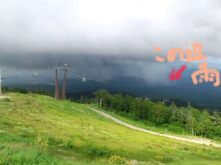 "だだ今雷雲が接近しておりますのでロープウェイの乗車を制限しております”www