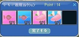 いちご着用コレクション 完成^^ 長いメンテ後 何が追加されるんでしょうかね?(3週目があるのかなぁ) では また メンテ後に~^^