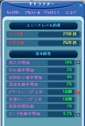 ユニークLVがアップした時にゲットした属性を合わせると、