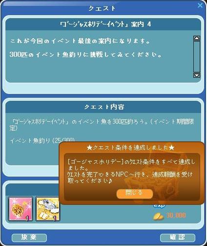 レア魚を1匹釣れクエは、案内板の300釣れに突入してから釣れた!