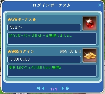 ログインボーナス連続100日目