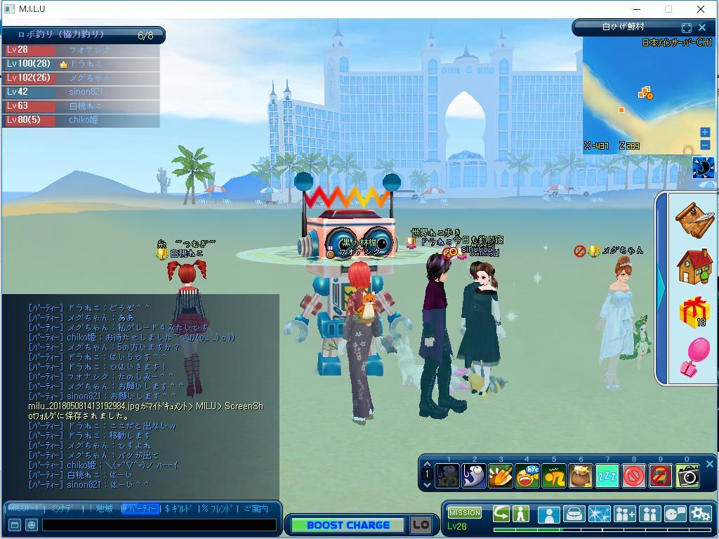 そろそろ落ちようかなぁ… と思っていると 【14時からロボ釣り三回やります^^】 との地域チャットが!