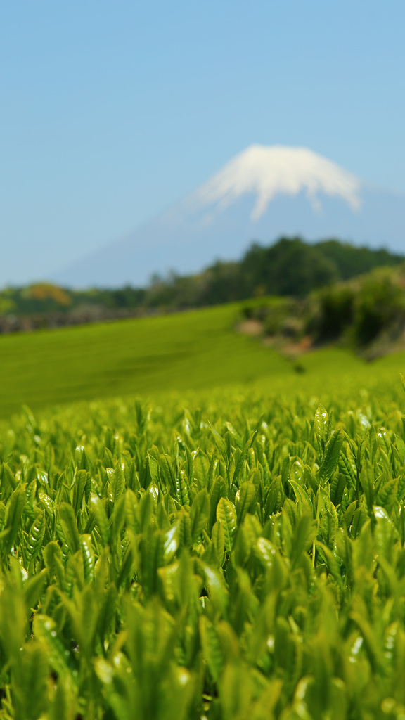富士山見ながら(そこでは当たり前なんでしょうけど)茶摘みが行われるんですね^^ |