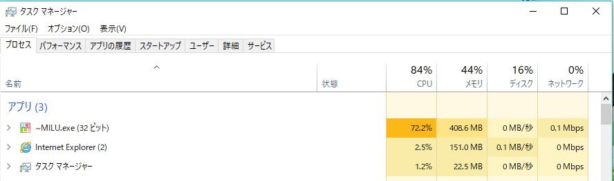 タスクマネジャみたらこんな感じ!
